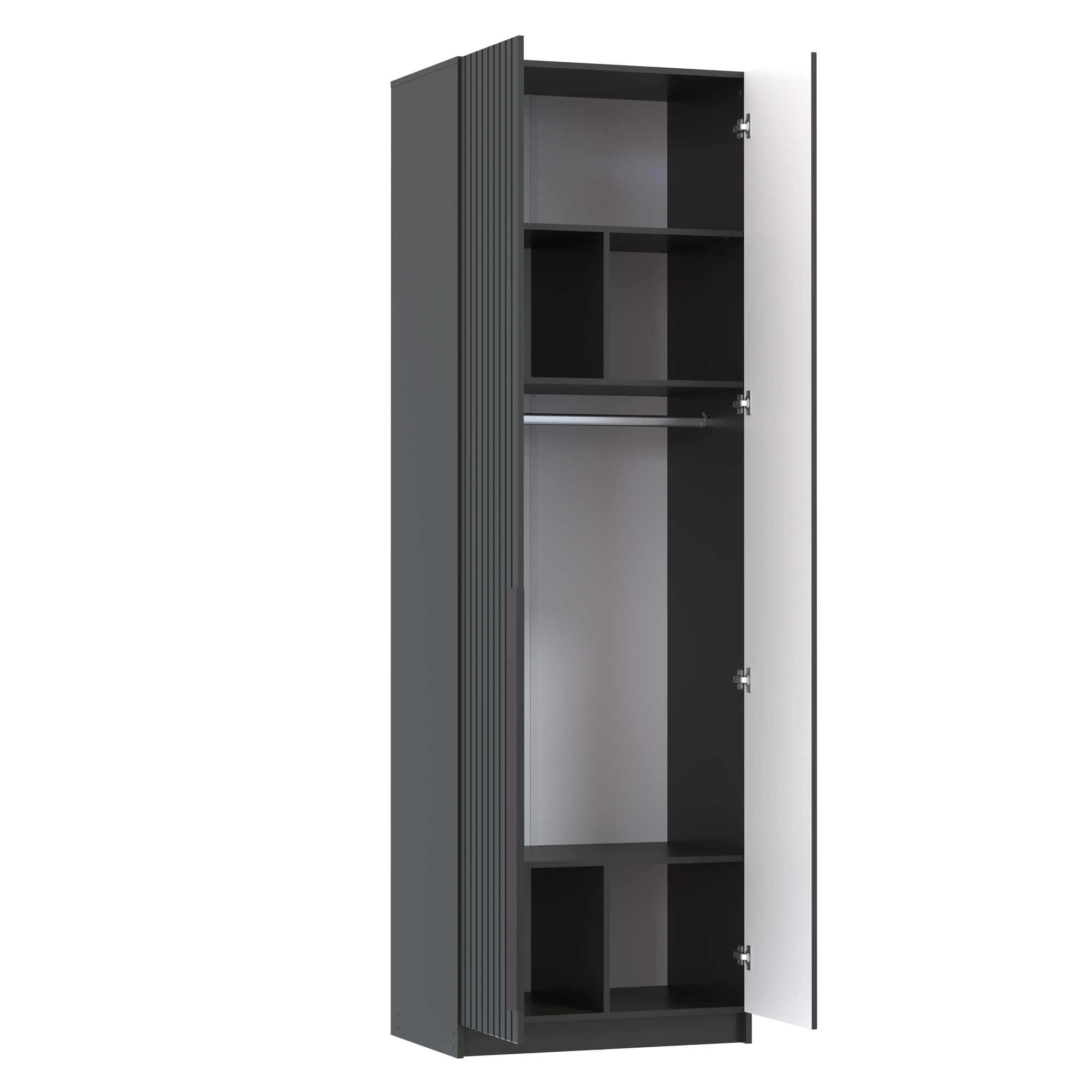 Шкаф для одежды 67.10 "Брандо" (2-х дв.) (h2500) New # (диамант серый / ДВПО: белый / фасады: МДФ с ПВХ графит / ручка L1000 металл черный)
