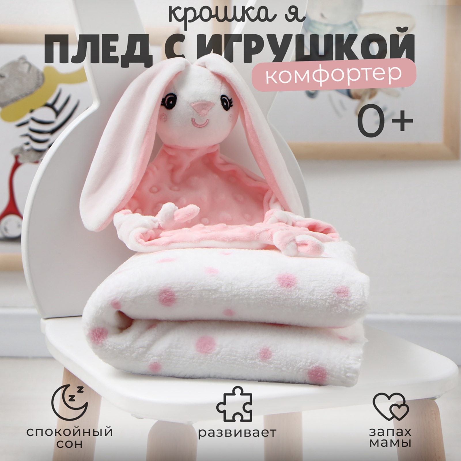 Плед с игрушкой Крошка Я "Зайка" 75*90см, цв. розовый 10526372