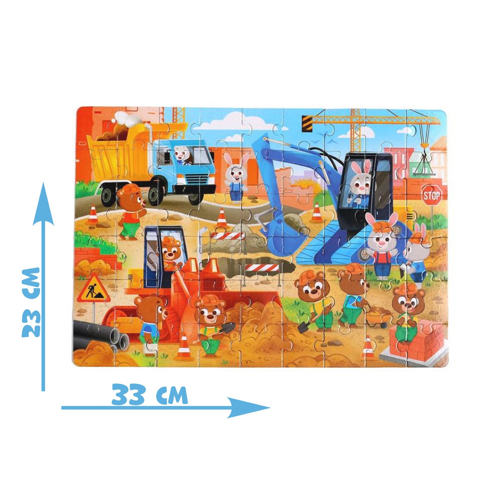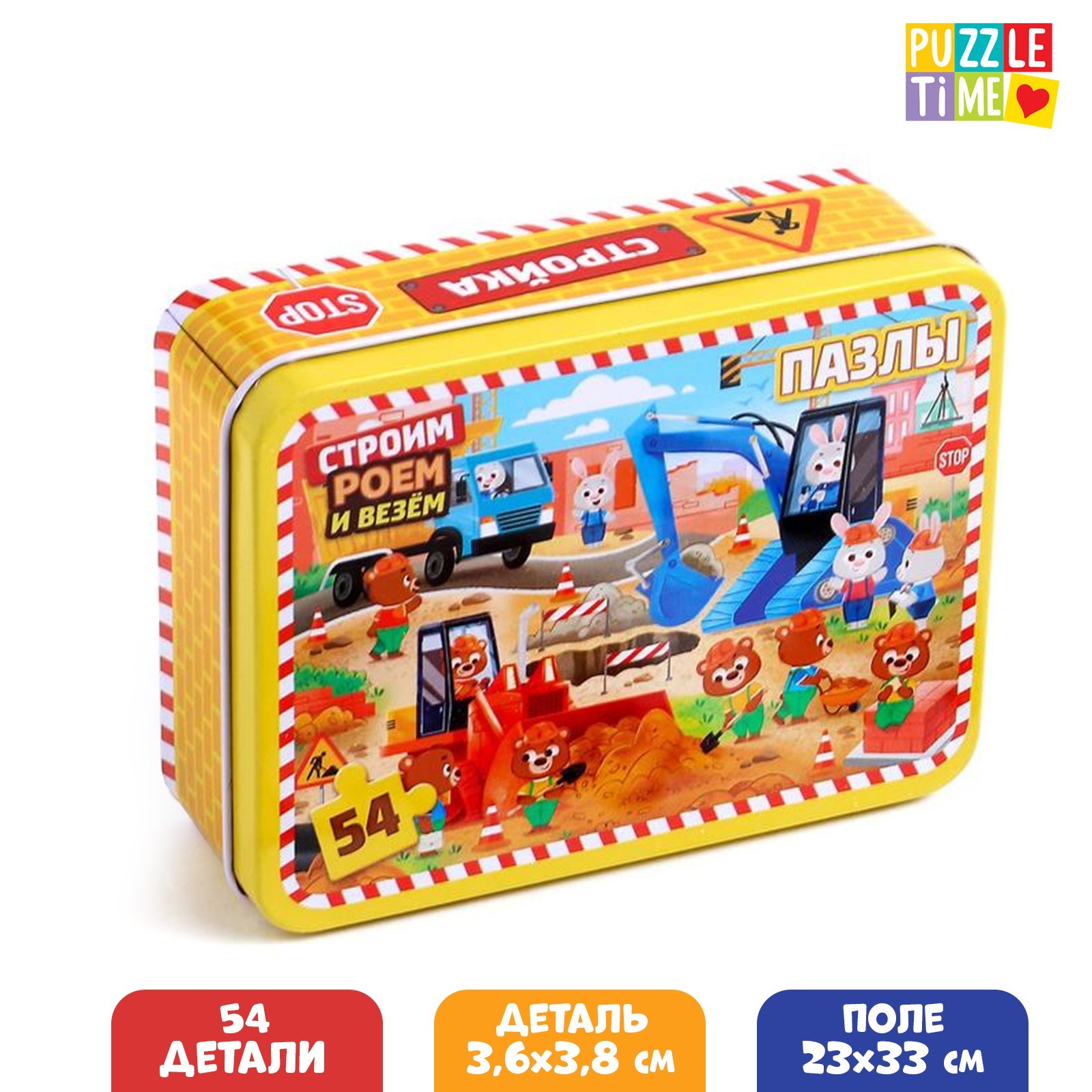 Пазл 54 элемента в металлической коробке "Строим, роем и везём"