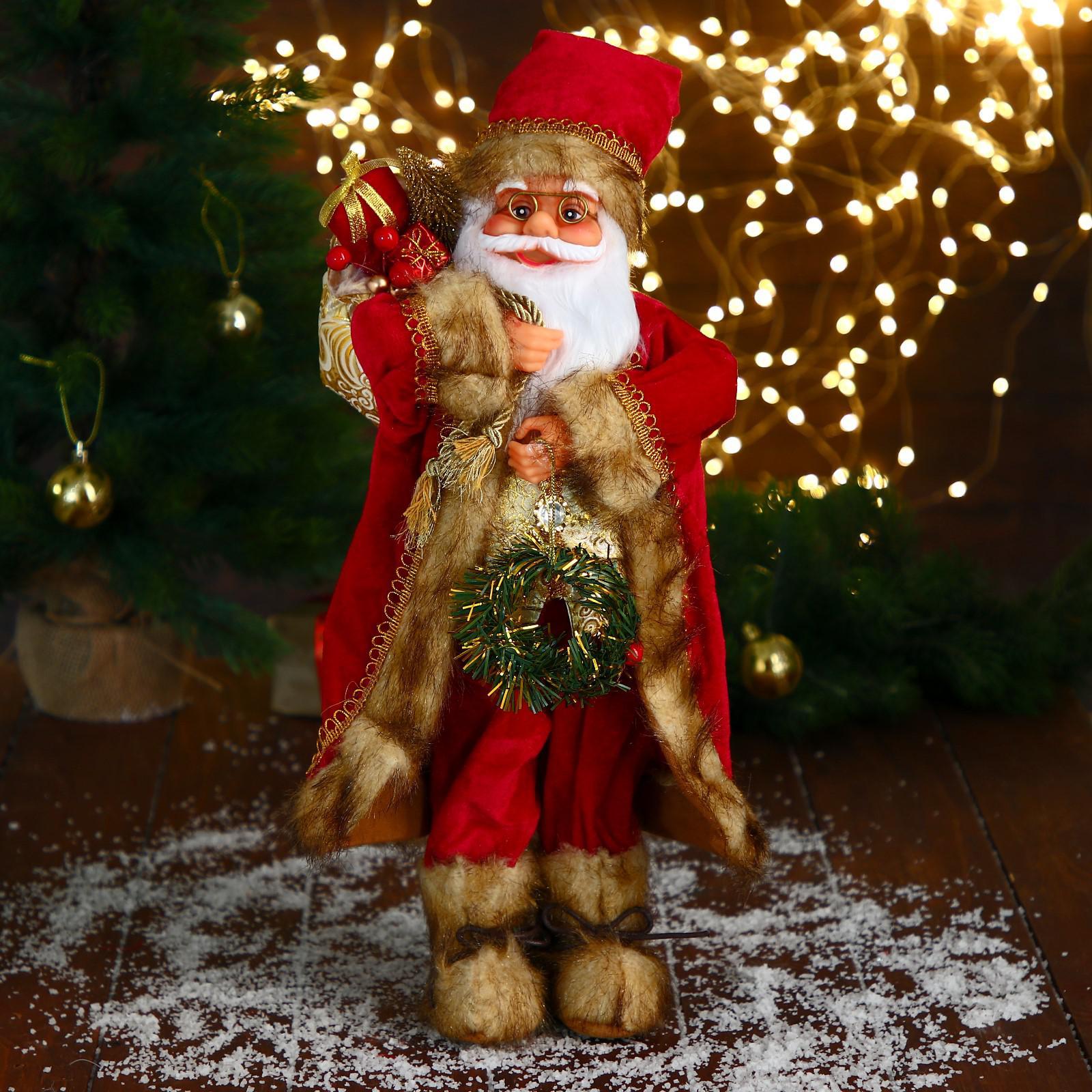 Дед Мороз "В золотом кафтане, с венком" 45 см