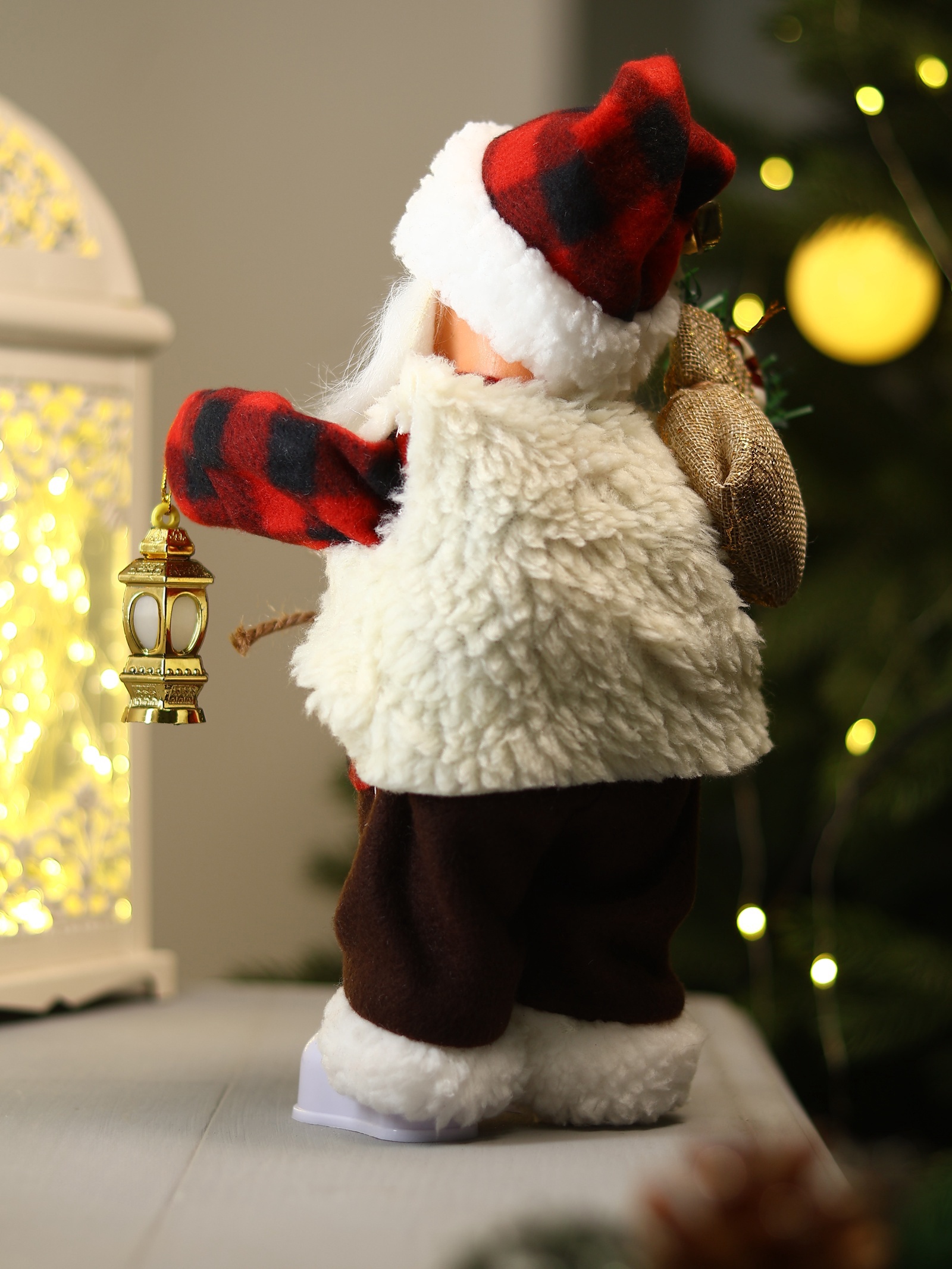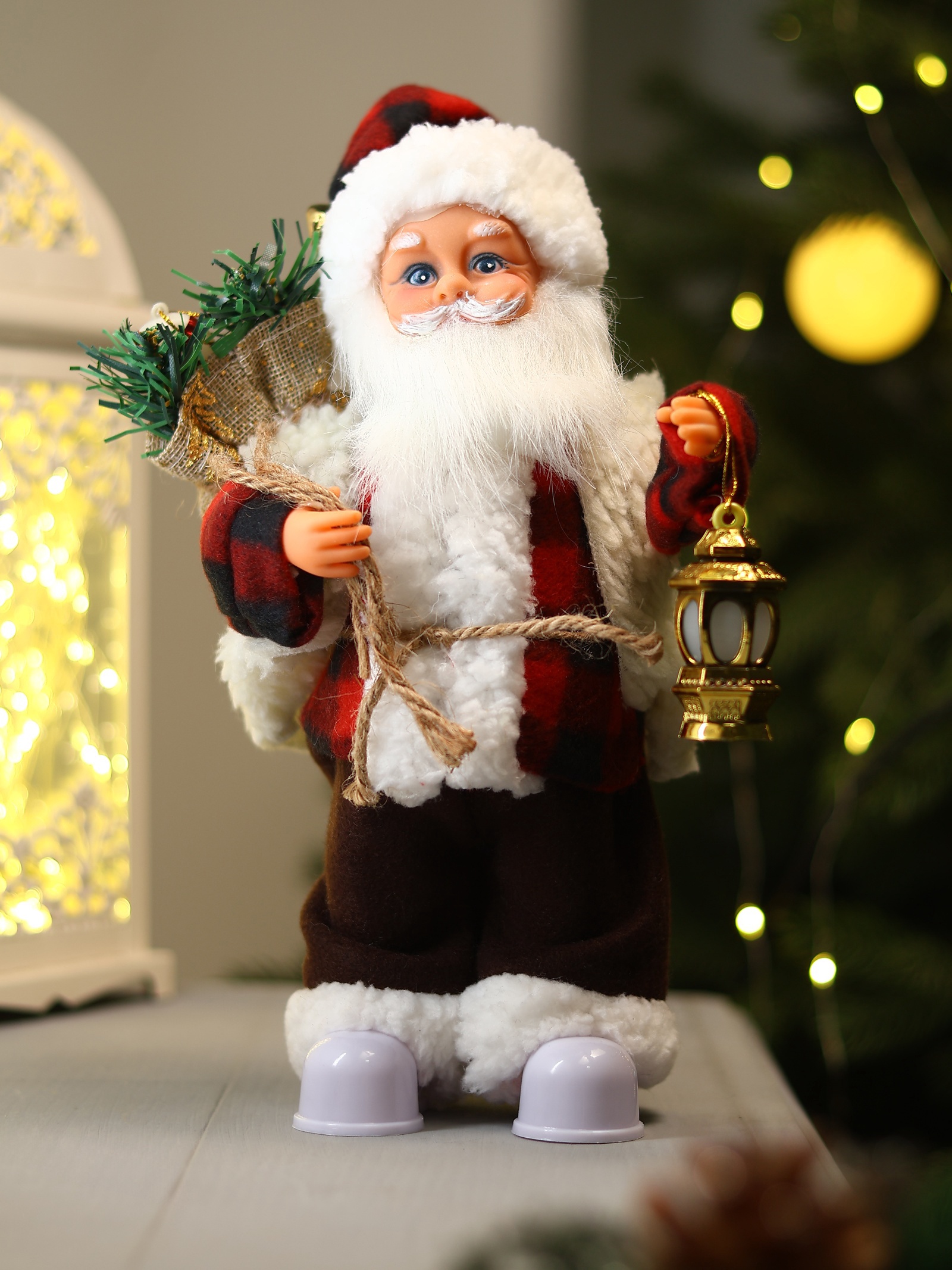 Кукла интерьерная "Дед Мороз с подарками, веночком и фонариком" 37 см