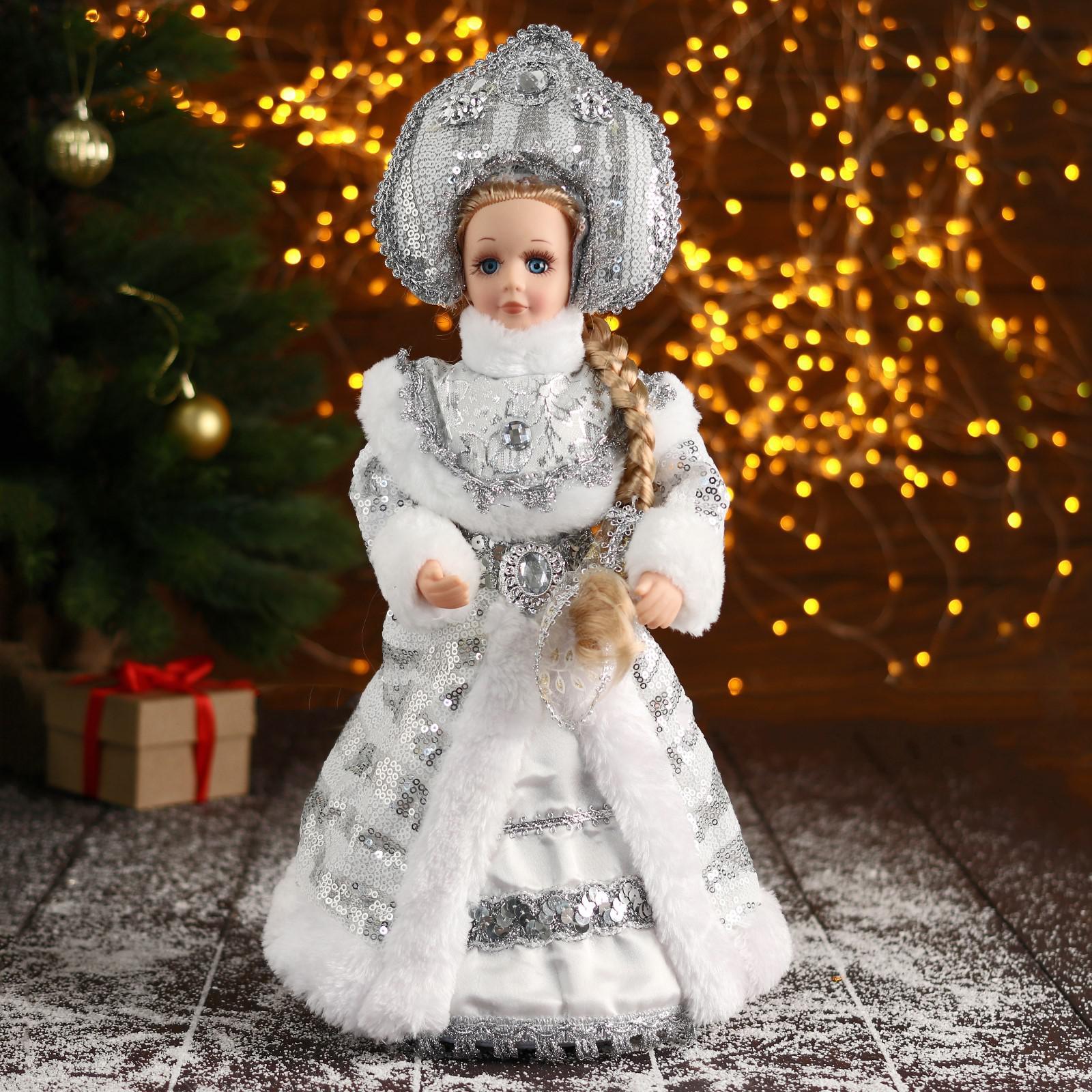 Снегурочка "В белой шубке и кокошнике" 17х35 см, микс