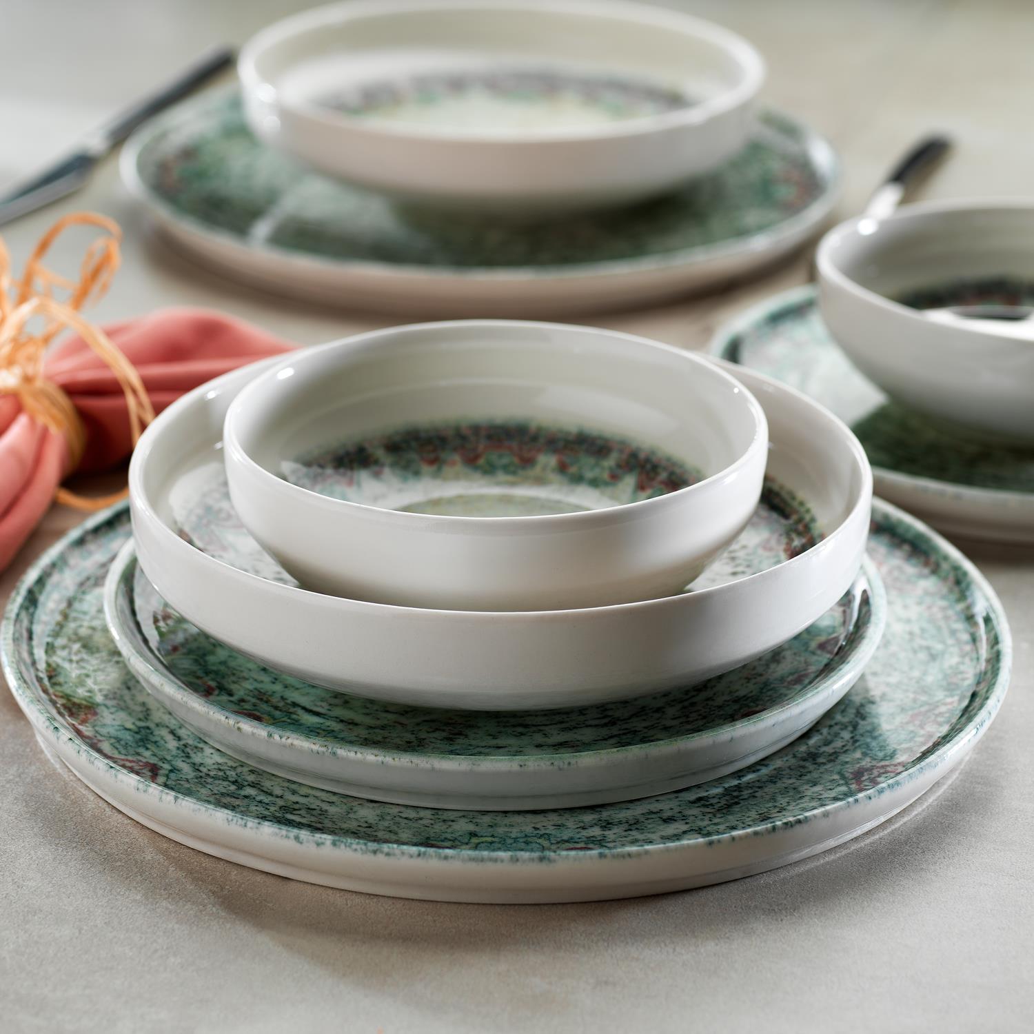 Обеденный сервиз 16 предметов - Аквамарин Материал: фарфор Содержимое продукта: 4 обеденные тарелки 4 сервировочные тарелки 4 десертные тарелки 4 миски