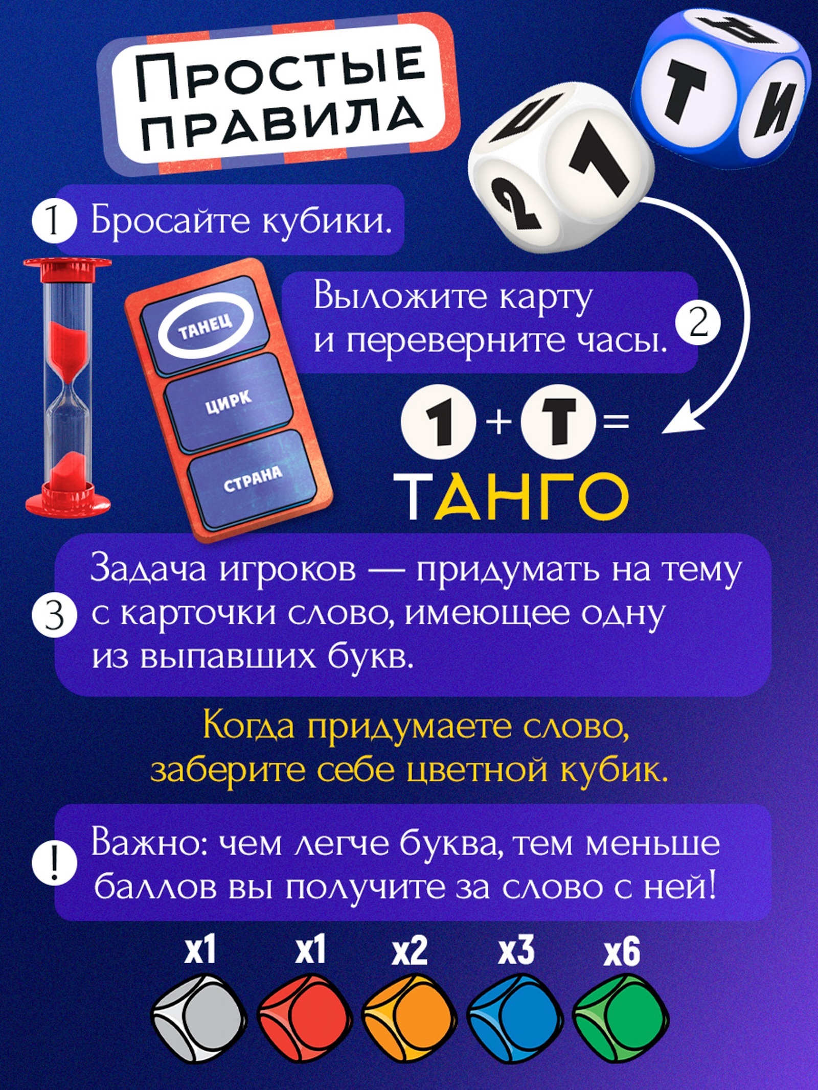Игра отлично развивает мышление, словарный запас и скорость реакции, а также подходит для весёлого времяпрепровождения в компании.