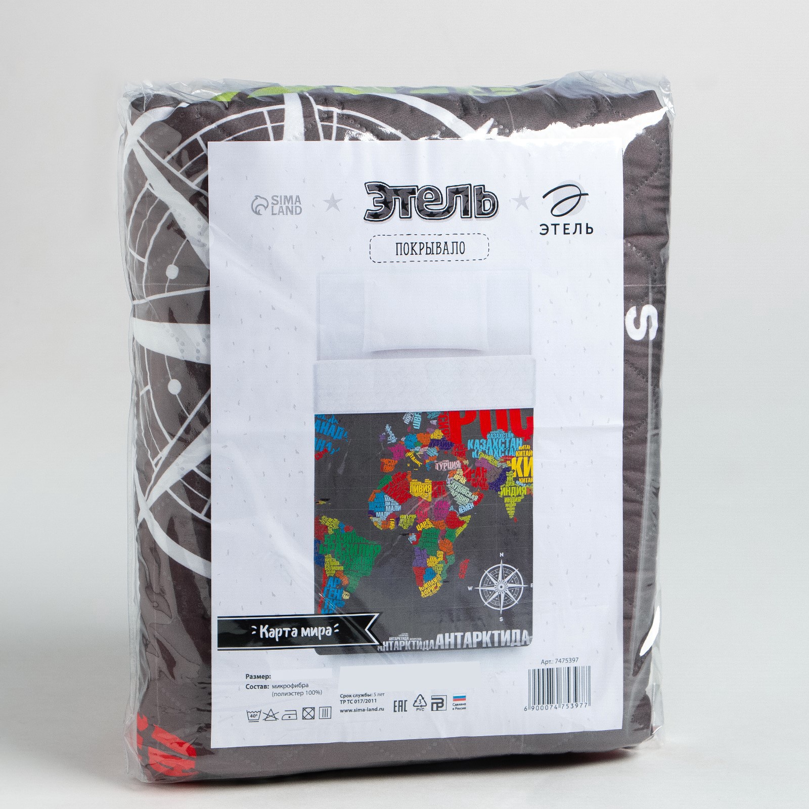 Покрывало "Этель" 1,5 сп Карта мира, 145*210 см, микрофибра 7475397