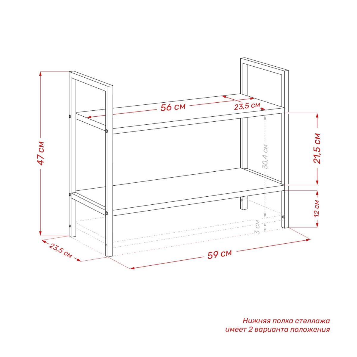 Компактный стеллаж Leset Стилвуд на двух полках — простое и надежное решение для дома и офиса. Каркас из металлического профиля 1,5 см (толщина 0,1 см) с порошковым покрытием гарантирует устойчивость и защиту от коррозии, а строгие прямые линии впишутся в любой интерьер — от минимализма до лофта. Нижняя полка крепится на разных высотах, что позволяет адаптировать стеллаж под книги, технику или корзины. Полки из ЛДСП толщиной 1,6 см легко чистятся, устойчивы к царапинам и выдерживают до 20 кг каждая. Маленькая плоская упаковка делает перенос и транспортировку удобными — легко нести в руках. Преимущества: прочность, универсальность, экономия места и аккуратный внешний вид без лишних деталей.