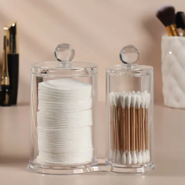 Органайзер д/ват дисков и палочек 2секц с крышк d6.7*19см прозрач к/кор QF 4688771